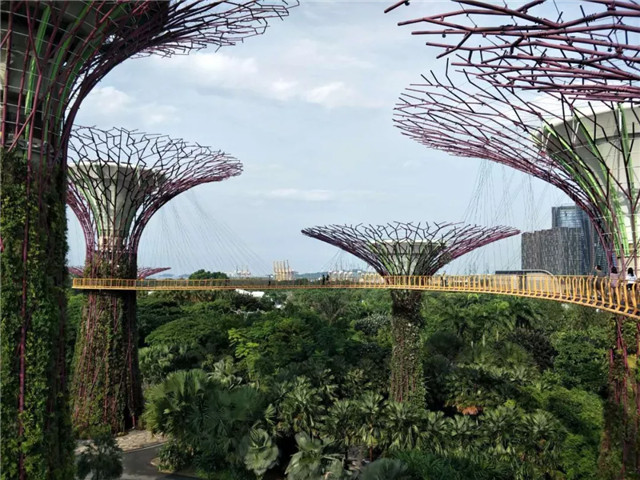 新加坡的綠化是立體的。高大的喬木、低矮的灌木,如茵的草地,相互輝映;樓房的四面綠化,立交橋和高架橋的垂直綠化,相得益彰:這一切營造出了一個美好的綠色世界。新加坡綠化的成功應得益于他們多年來所一貫秉承的綠化理念。道路兩旁樹木成蔭,街頭到處是小花園、小草坪,花香草綠,空氣清新,因此被世界公認為“花園城市國家”。