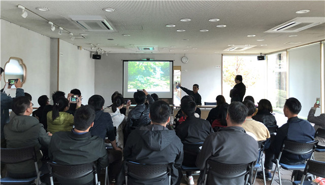 考察期間,四位指導老師——日本造園大師、植芳造園董事長、東京農業(yè)大學客座教授井上剛宏,日本兵庫兵縣立大學大學院教授、景觀設計領域系主任沈悅,園林理論結合營造實踐的先行者、浙江人文園林股份有限公司董事長陳勝洪,知名園林文化學者、上海園冶文化創(chuàng)意有限公司創(chuàng)始人林小峰,從園林整體規(guī)劃設計、植物景觀特征及配置手法、中日園林不同特點、日本文化及日本民族性等各個角度,給學員們作了詳細而精彩的講解,大家聽后受益匪淺。
