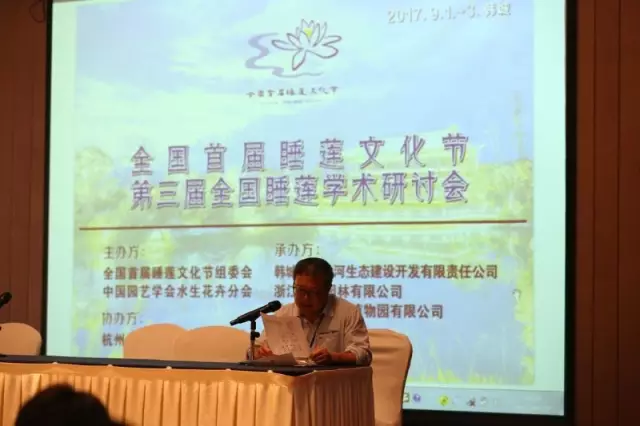第三屆全國(guó)睡蓮學(xué)術(shù)研討會(huì)于9月1-3日在陜西省韓城市召開(kāi)。會(huì)議是2017全國(guó)首屆睡蓮文化節(jié)的重要組成部分,由全國(guó)首屆睡蓮文化節(jié)組委會(huì)和中國(guó)園藝學(xué)會(huì)水生花卉分會(huì)主辦,韓城市澽水河生態(tài)建設(shè)開(kāi)發(fā)有限責(zé)任公司、浙江人文園林股份有限公司和杭州天景水生植物園有限公司聯(lián)合承辦,杭州市水生植物學(xué)會(huì)協(xié)辦。韓城市副市長(zhǎng)王輝、中國(guó)觀賞園藝學(xué)會(huì)副理事長(zhǎng)趙梁軍、中國(guó)科學(xué)院植物研究所研究員王亮生、韓城市澽水河生態(tài)建設(shè)開(kāi)發(fā)有限責(zé)任公司董事長(zhǎng)雷勤、杭州市水生植物學(xué)會(huì)理事長(zhǎng)、浙江人文園林股份有限公司副總裁陳煜初出席開(kāi)幕式。來(lái)自19個(gè)省市自治區(qū)、澳門特別行政區(qū)和臺(tái)灣地區(qū)代表共60余位專家學(xué)者參加了會(huì)議。