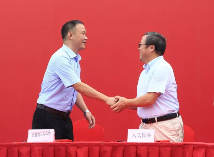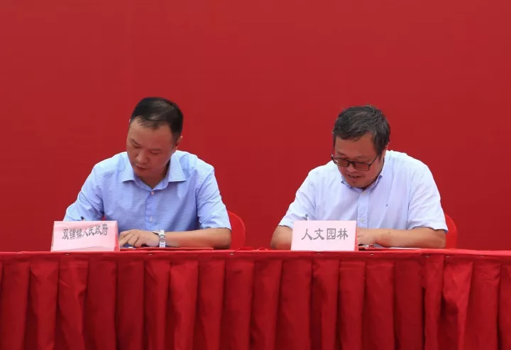 陳煜初副總裁代表浙江人文園林股份有限公司與雙浦鎮人民政府簽署了項目合作協議。杭州市委市政府、西湖區區委區政府各級領導出席了會議,簽約單位和建設單位代表共500余人參加了今天的活動。