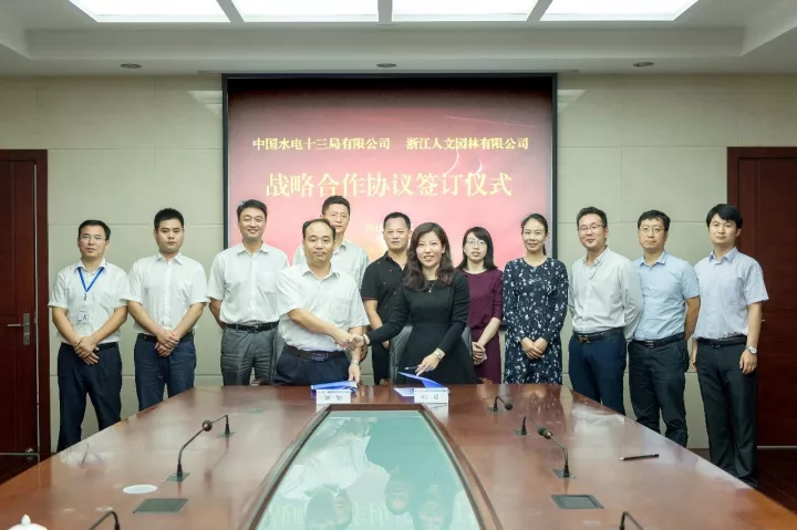 隨后,人文園林董事、副總裁韓瑤女士與中水十三局黨委書記劉健先生共同簽署戰(zhàn)略合作協(xié)議。